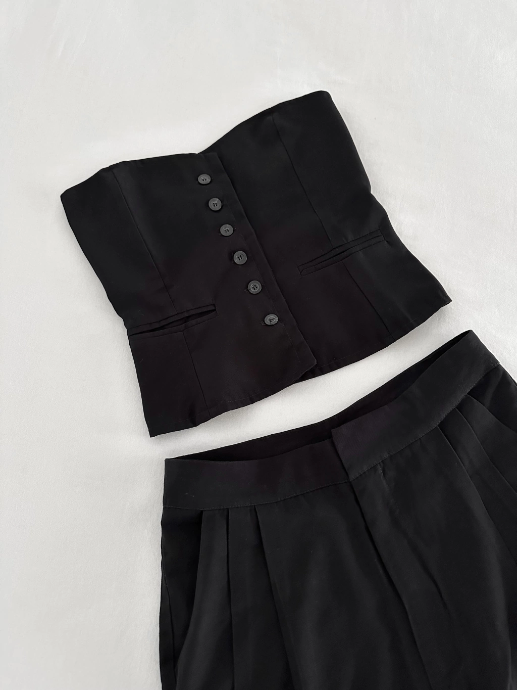 Bustier Sastre realizado realizado en Lino Satén (82% Rayón 10% Lino 8% Poliester). Prenda básica y atemporal, super versátil para usar en invierno o verano. Con jean o con un pantalón sastre vas a poder usarlo en diversas ocasiones.