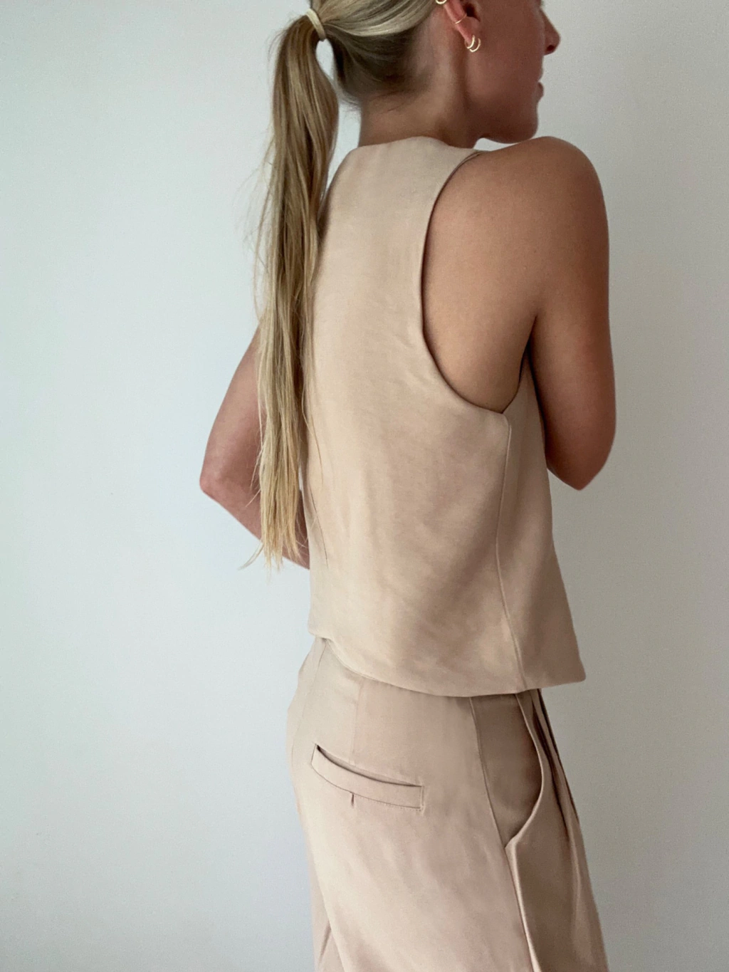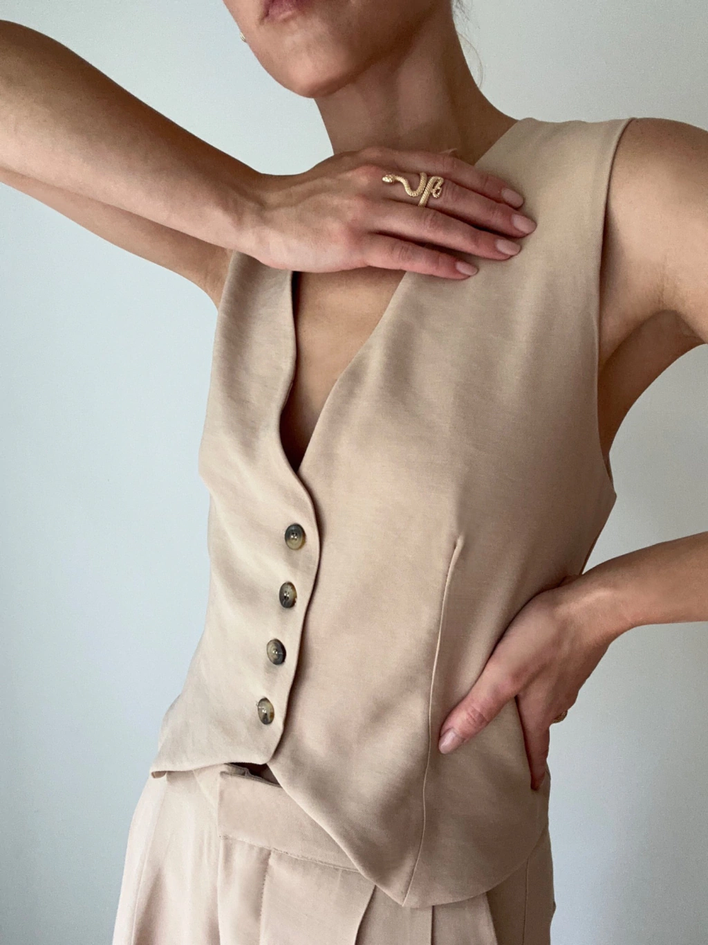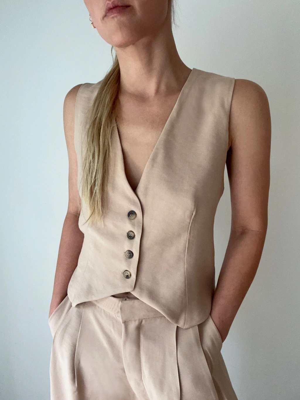 Chaleco Sastrero realizado realizado en Twill (90% Rayón 10% Poliester). Prenda básica y atemporal, super versátil para usar en invierno o verano.