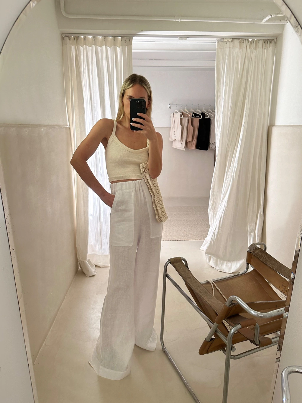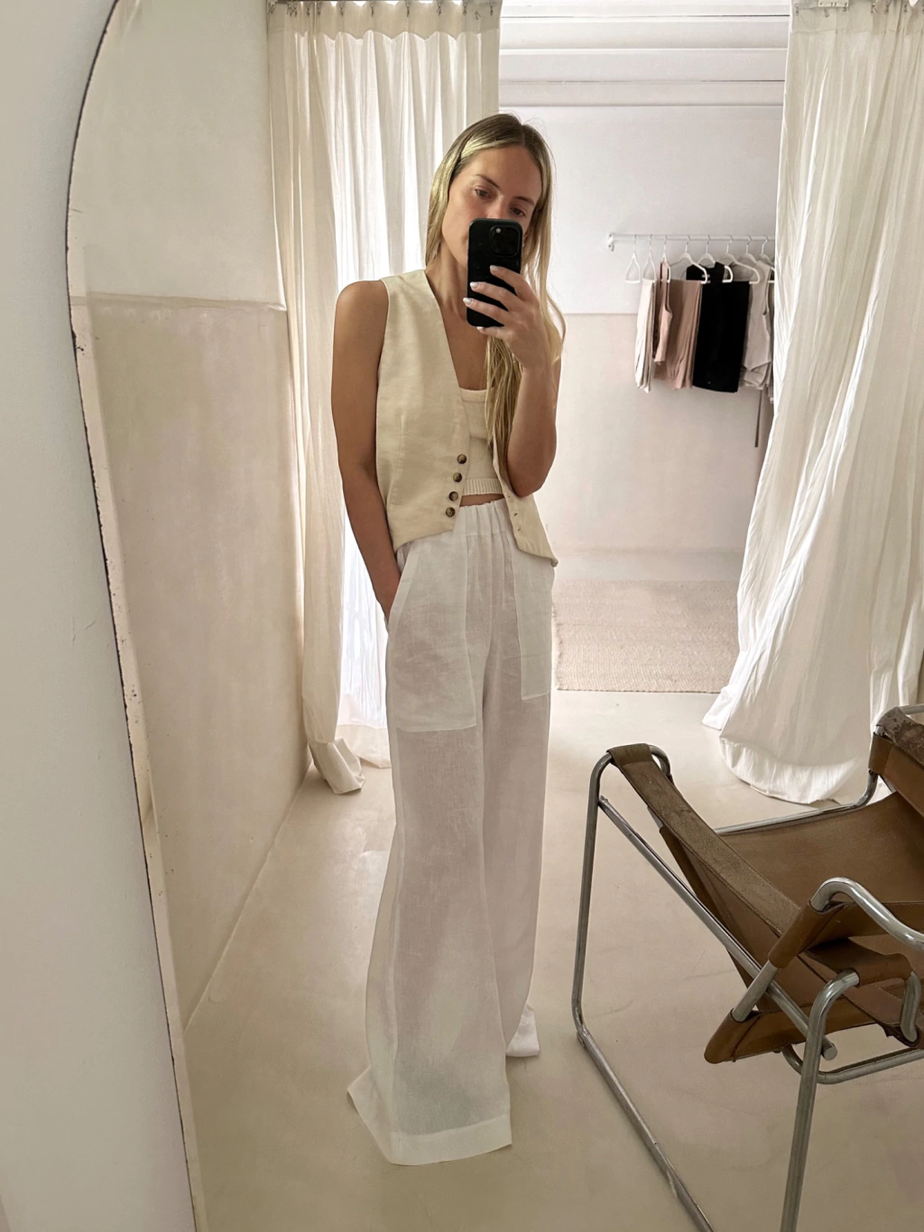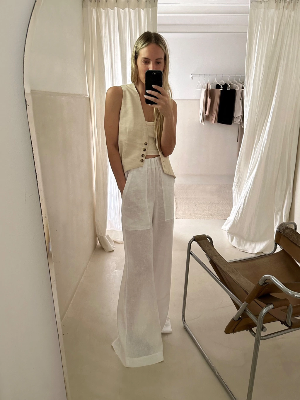 Pantalón confeccionado en Lino 100%. Fresco y amplio, ideal para la playa.