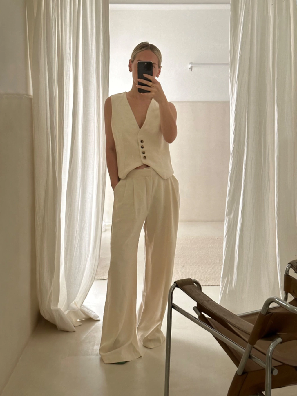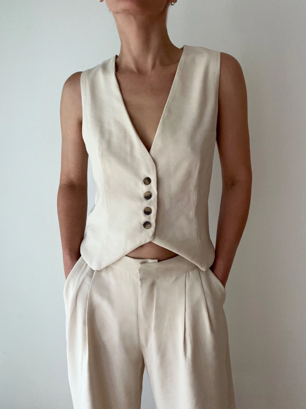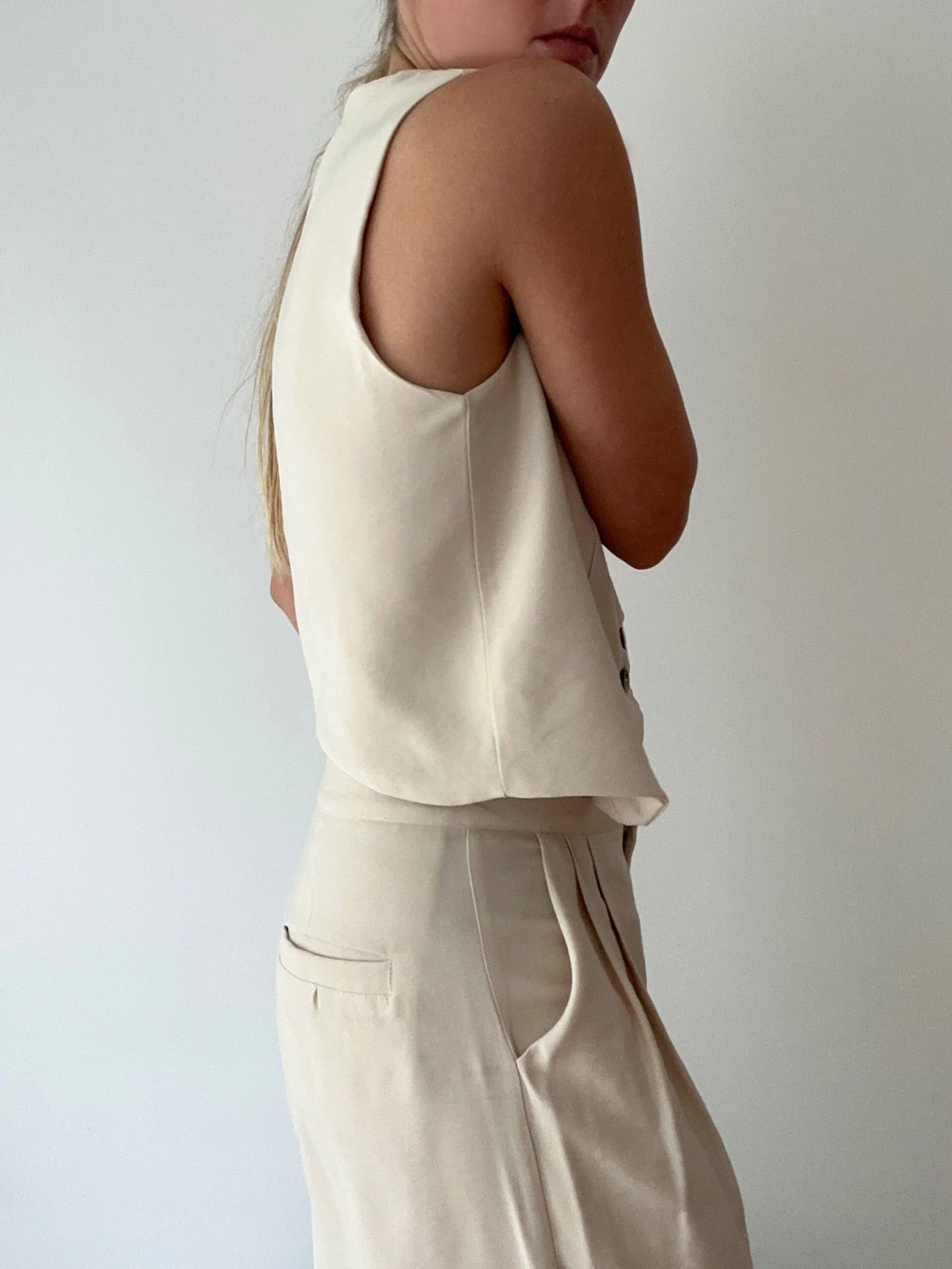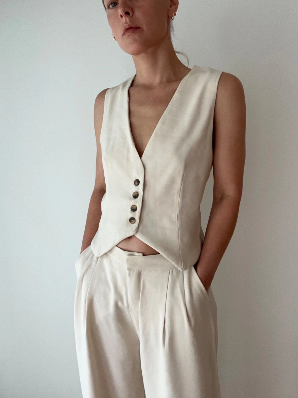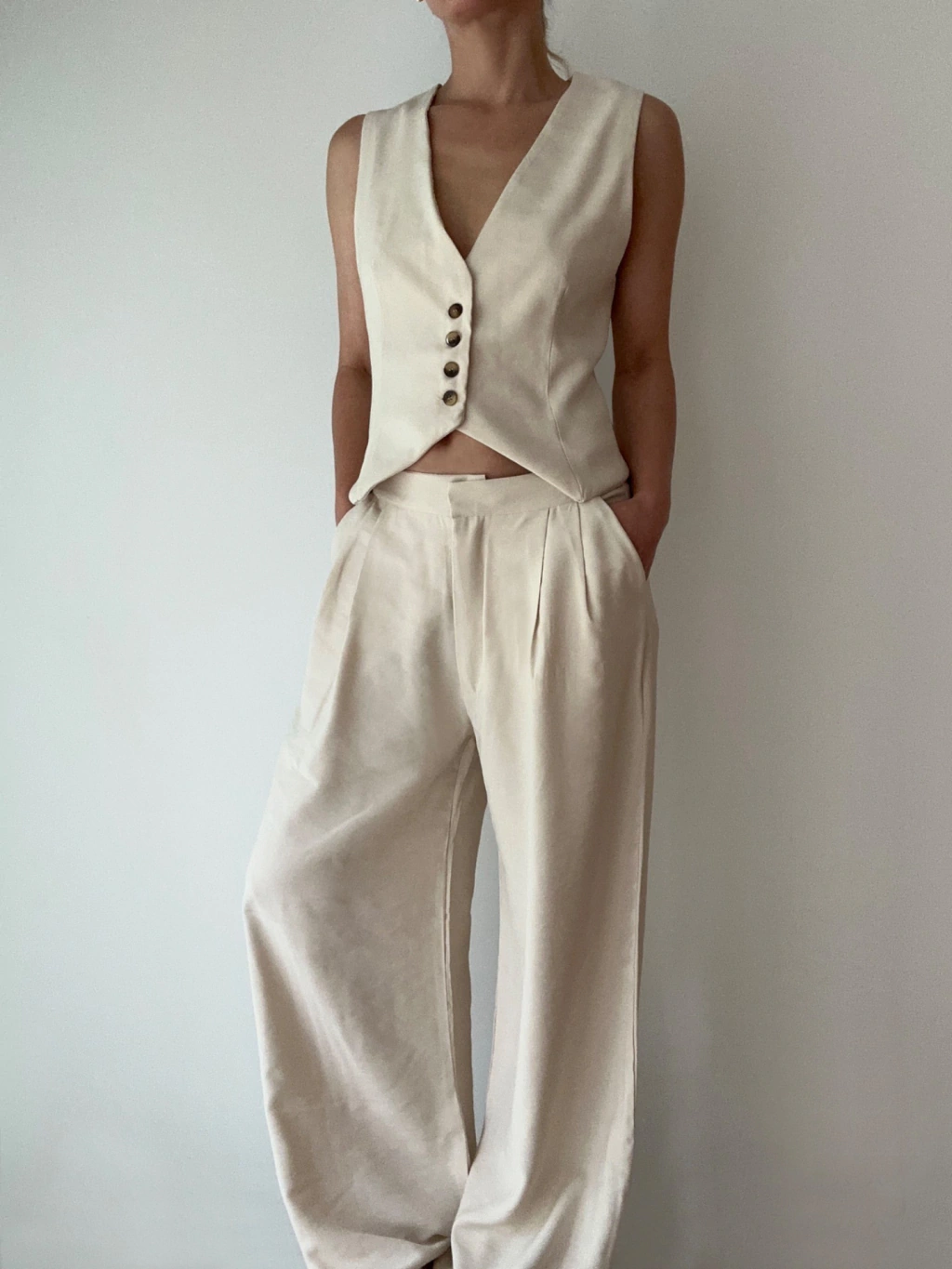 Pantalón sastrero amplio y recto, realizado en Twill (90% Rayón 10% Poliester). Prenda básica y atemporal, super versátil para usar en invierno o verano.