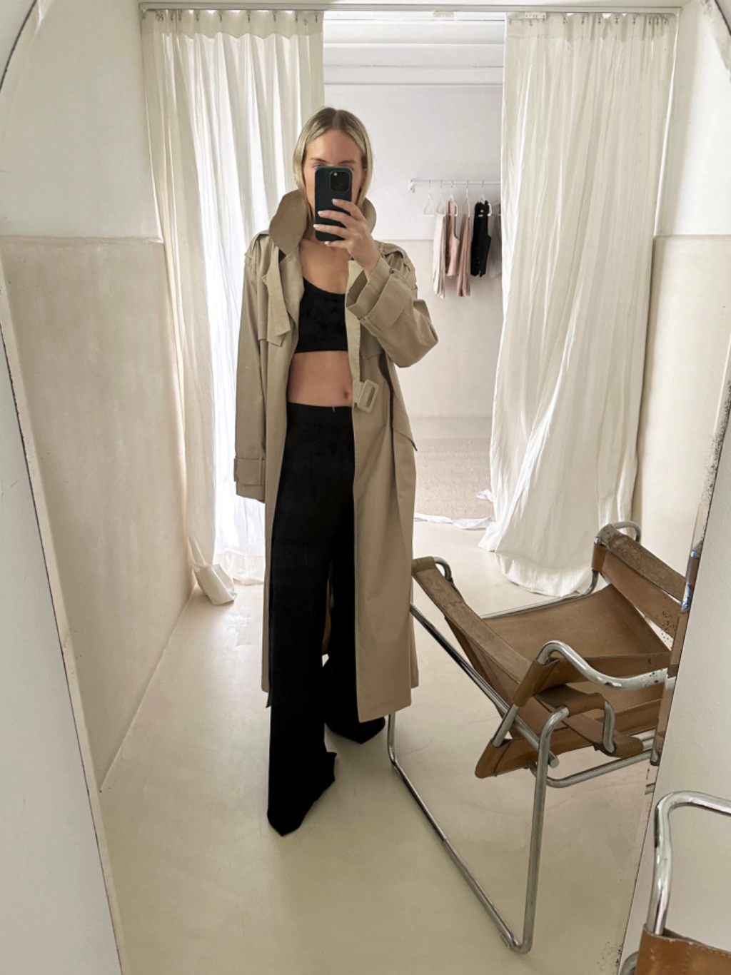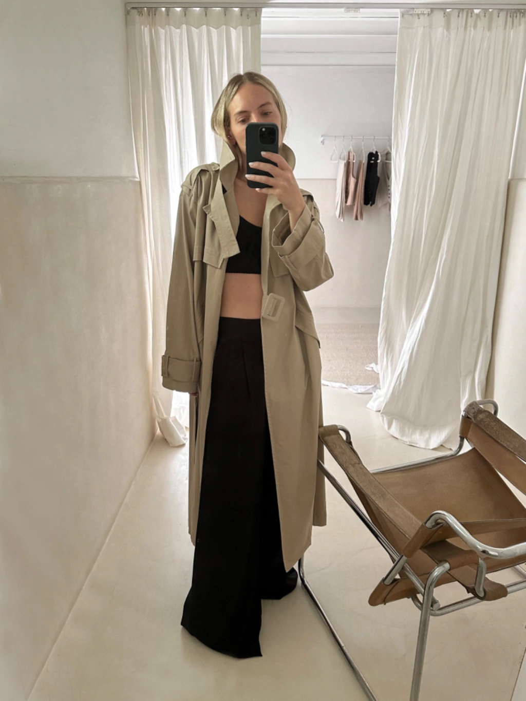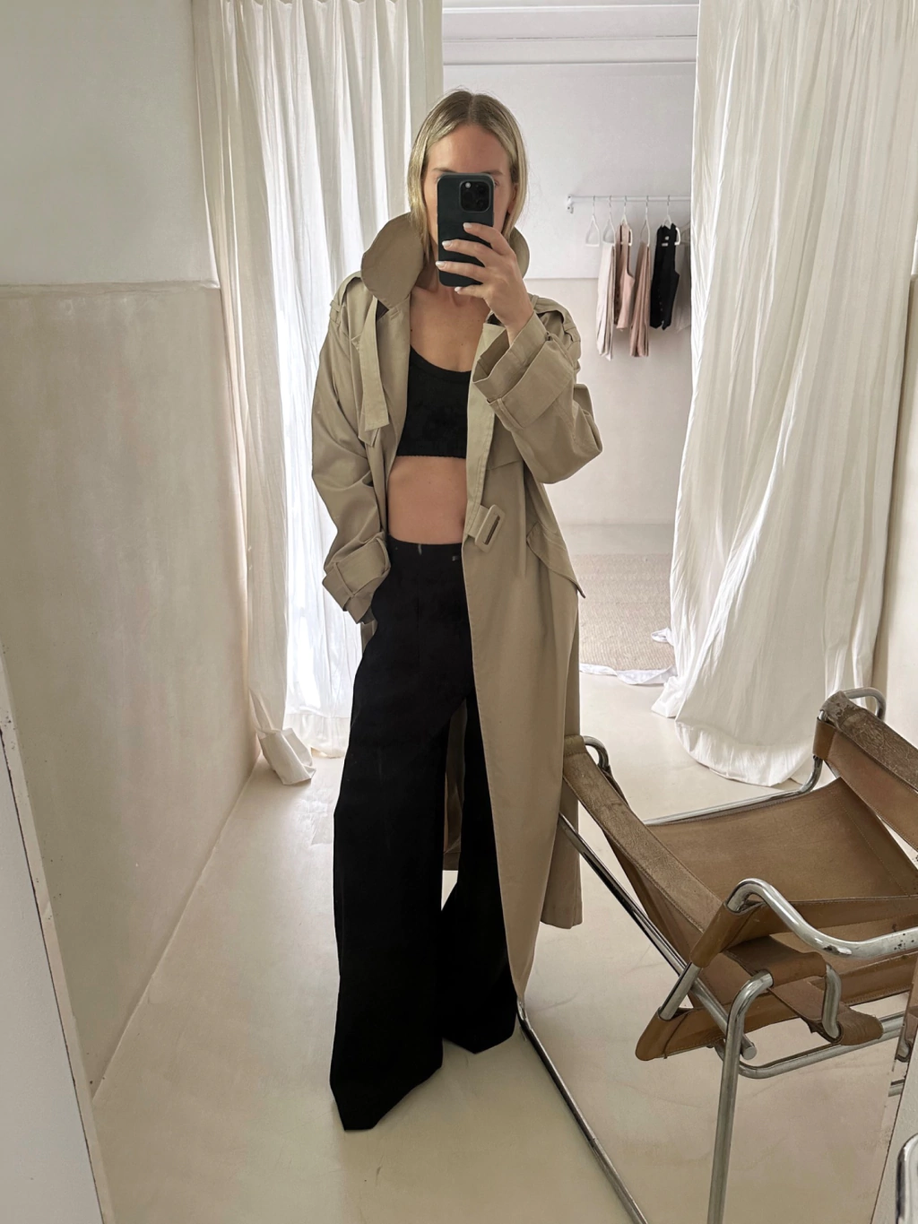 Trench oversized realizado en Gabardina de 97% Algodón 3% Spandex de la más alta calidad. Prenda básica y atemporal, super versátil para usar en invierno o verano. No es impermeable.